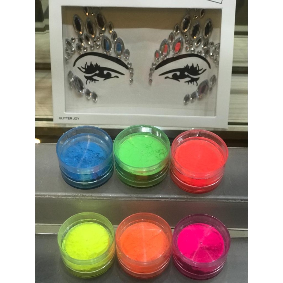 Sombra Neon em pó kit 6 unidades (1 de cada cor: laranja, vermelho, pink, azul, verde, amarelo) + 1 máscara de carnaval cor sortida