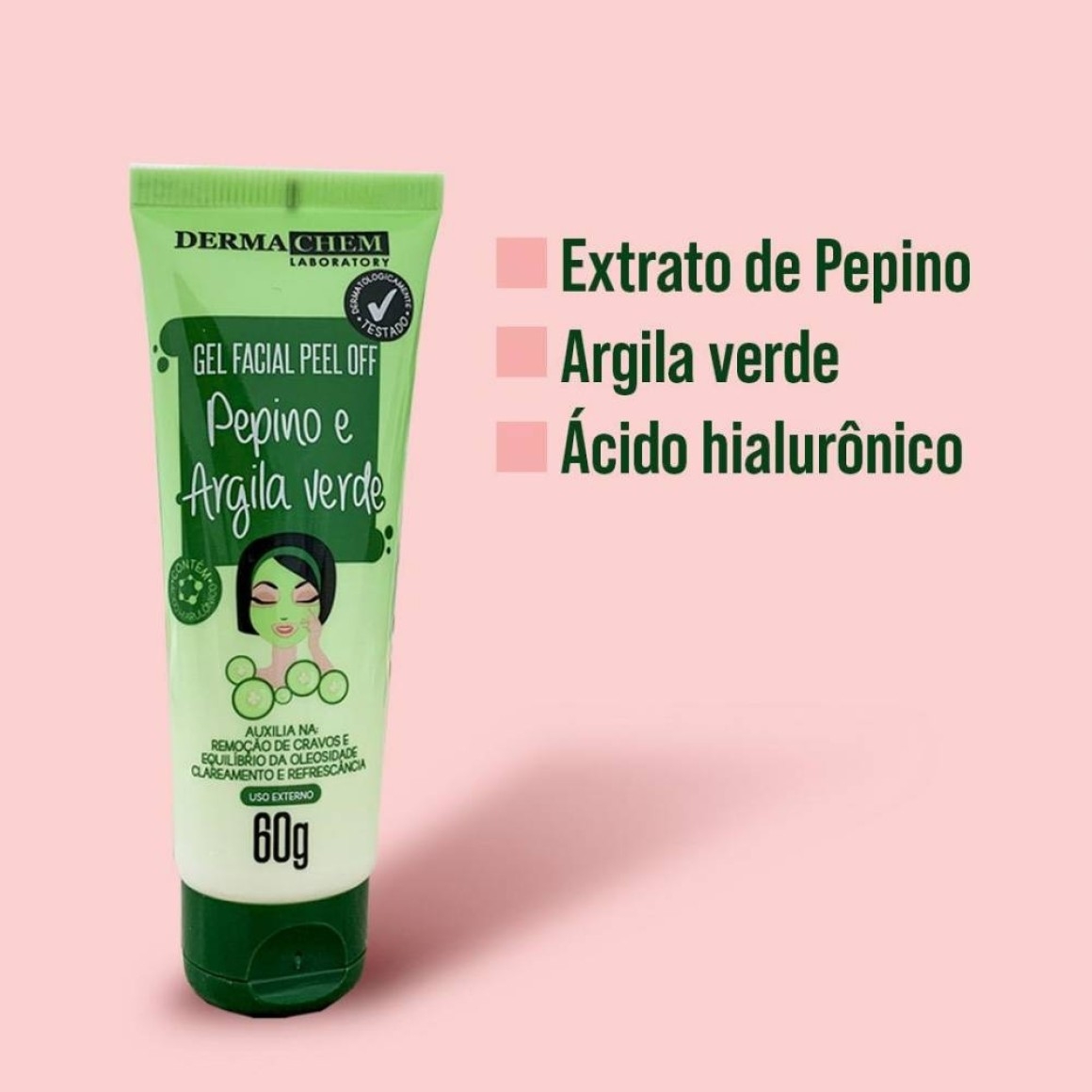 O Gel Facial da Dermachem possui ativos que associados ao ácido hialurônico e argila verde que auxiliam na remoção de cravos e no rejuvenescimento da pele, limpando, hidratando e revitalizando a pele. Auxilia no controle da oleosidade, clareamento e refrescância da pele. Dermatologicamente testado.