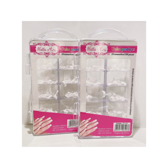 As Francesinhas Hello Mini são tips para alongamento de unhas que dão o efeito francesinha. Feitas em plástico flexível, adaptam-se ao formato natural das unhas e são mais resistentes. O diferencial é que tem mais variedade de tamanhos para maior precisão no encaixe e possuem abas numeradas para facilitar a aplicação.