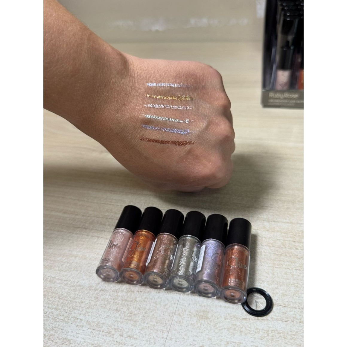 Contém: Contém: 6 delineadores glitter shine Ruby Rose sendo um de cada cor (cores 01, 02, 03, 04, 05 e 06)