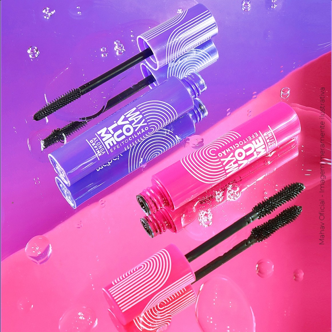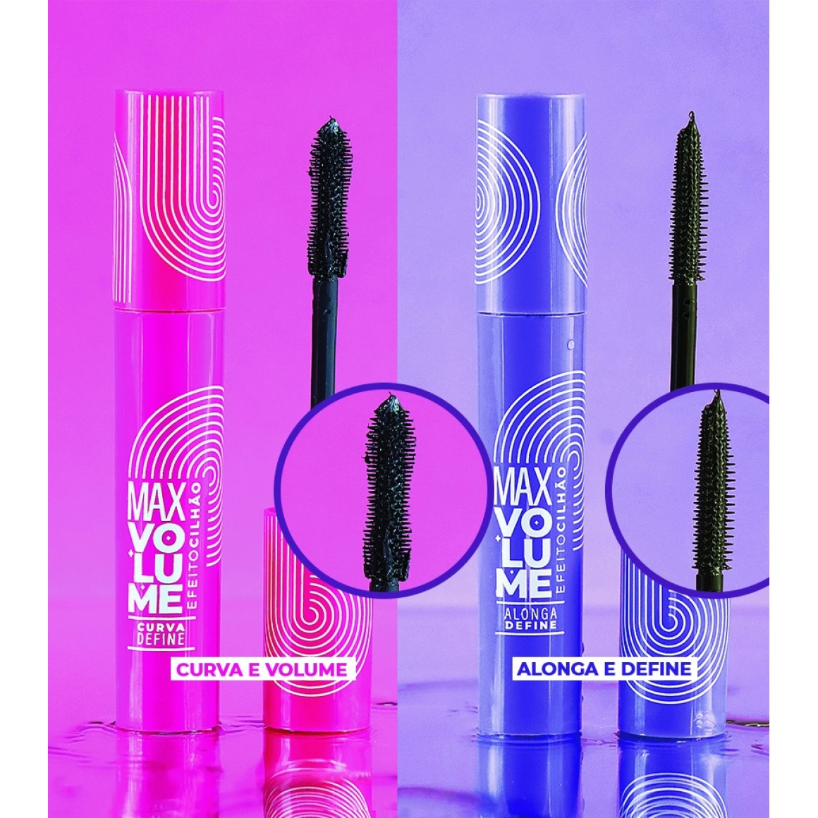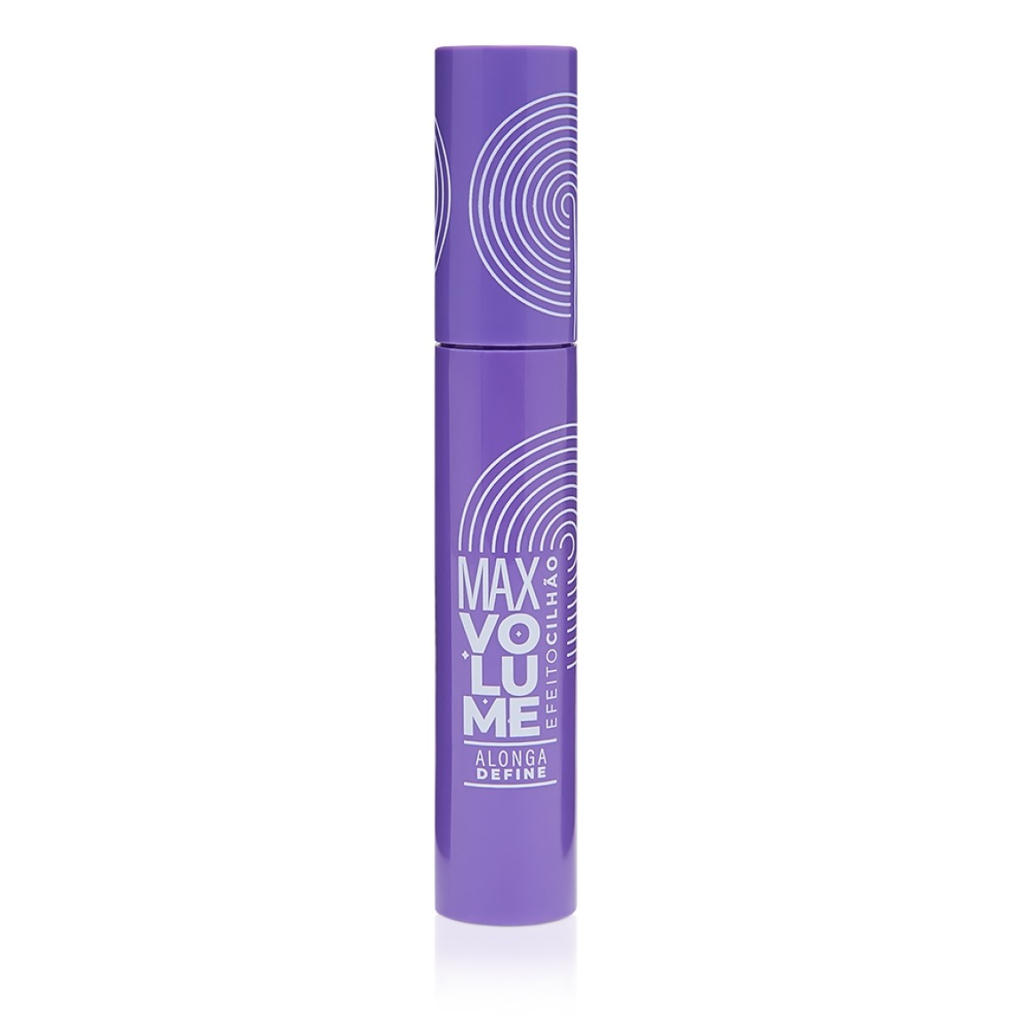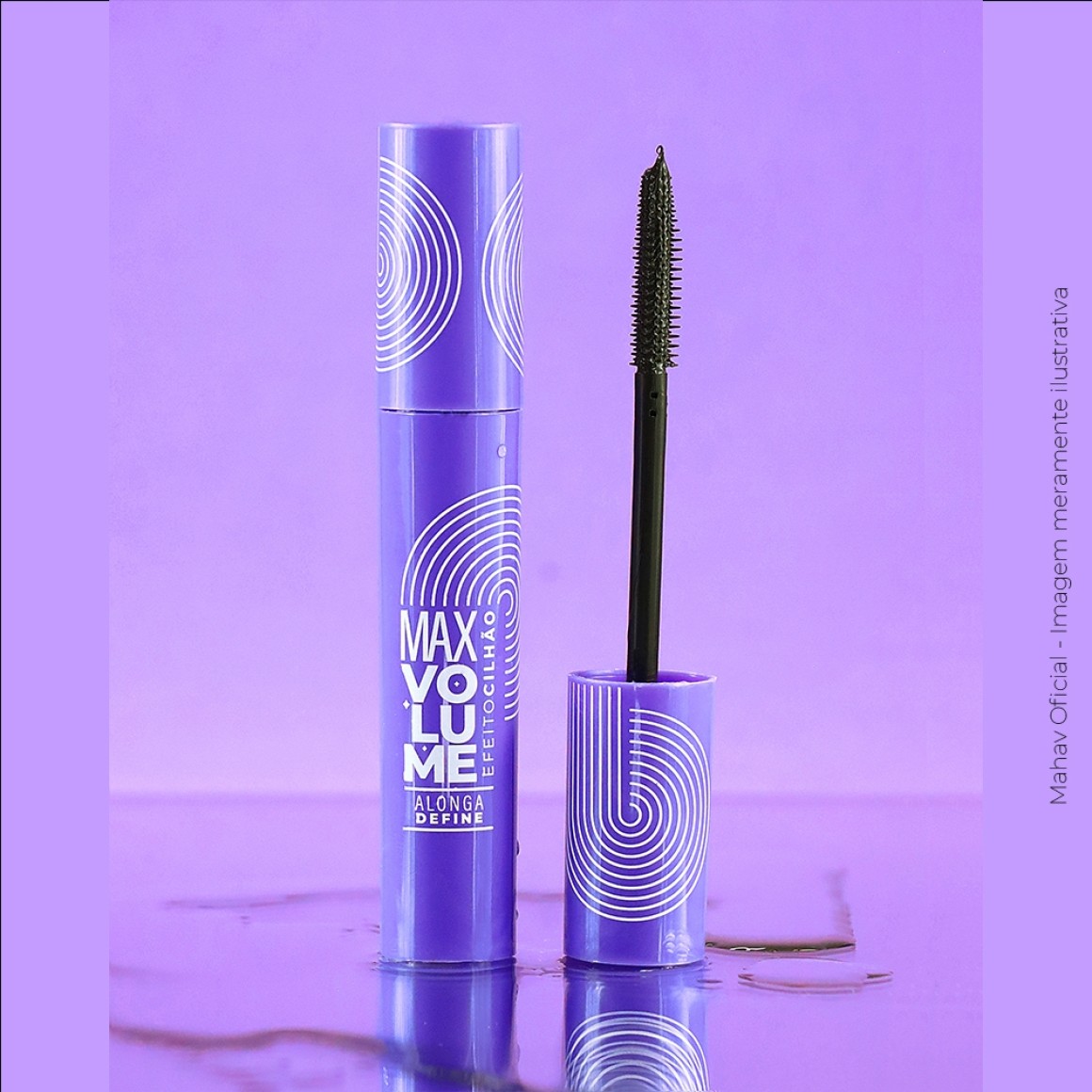 Máscara de Cílios Max Volume Alonga e Define Mahav tem o pincel fino com cerdas curtas: esse tipo de escovinha é ideal para definir, separar e alongar os fios, evitando o efeito “grude”. Essa maravilhosa tem cerdas espaçadas que vão se afunilando até formar uma ponta fininha que proporciona mega alongamento e máxima definição. logo nas primeiras aplicações é possível ver o resultado impecável e cílios pretinhos da raiz até as pontas, do jeito que a gente adora.