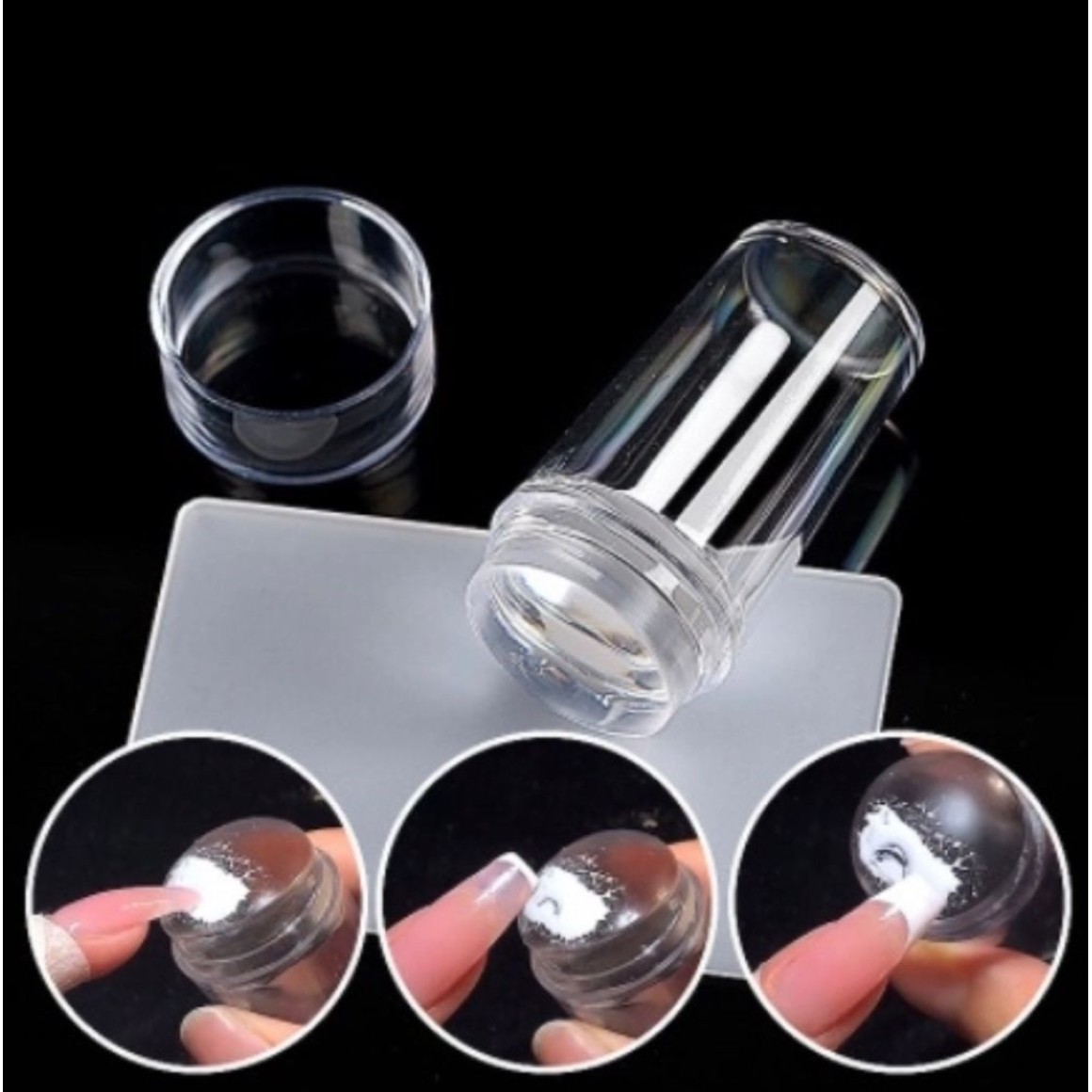 Tendência do momento, o Carimbo de Silicone para Unhas é popularmente utilizado para a confecção de francesinhas e transferência de diversos desenhos e modelos de placas para as unhas, naturais ou artificiais, de maneira simples e rápida. Possui corpo em plástico que facilita o manuseio e aplicação e esponja de silicone removível de alta qualidade de fácil substituição. Acompanha Raspador de plástico para raspagem das placas.