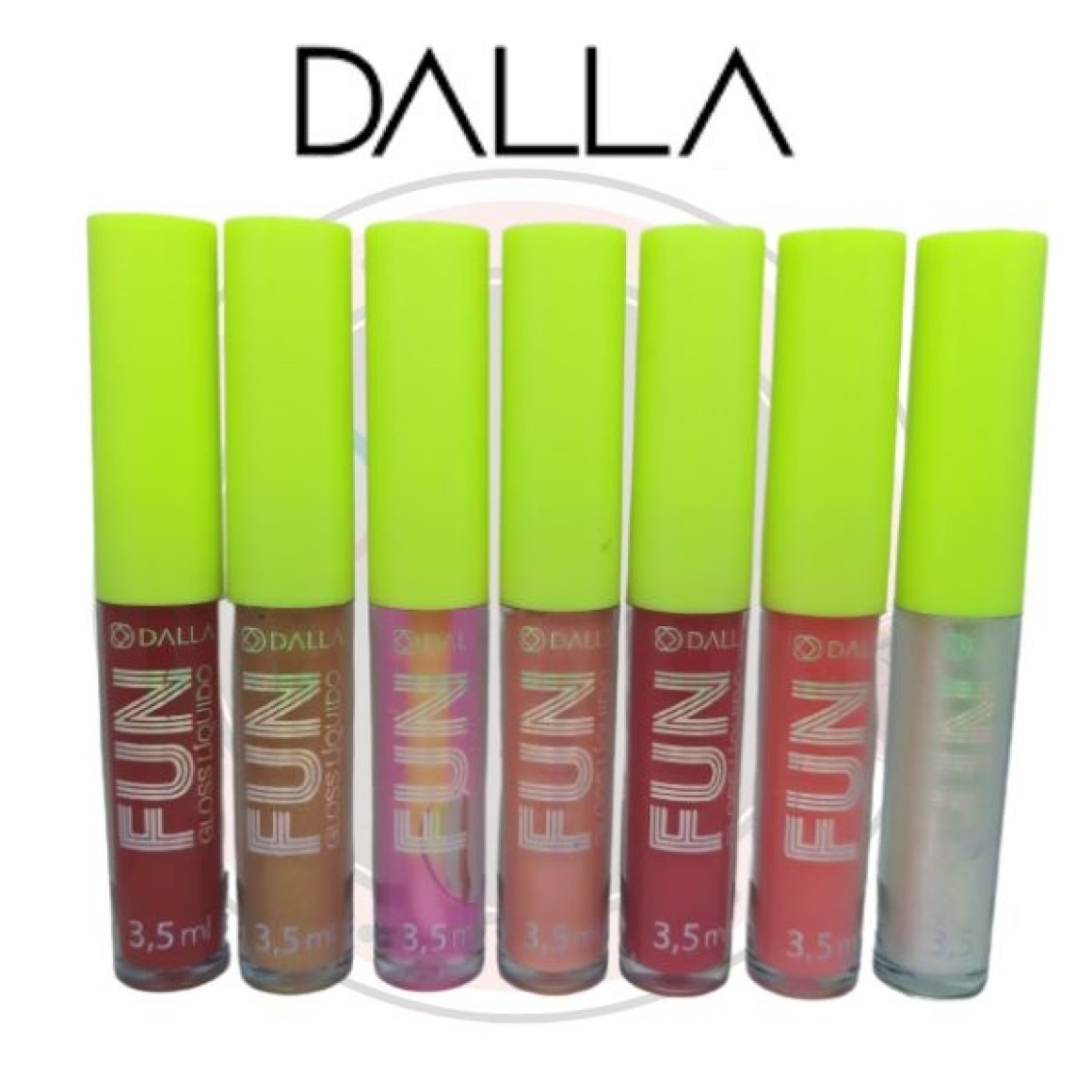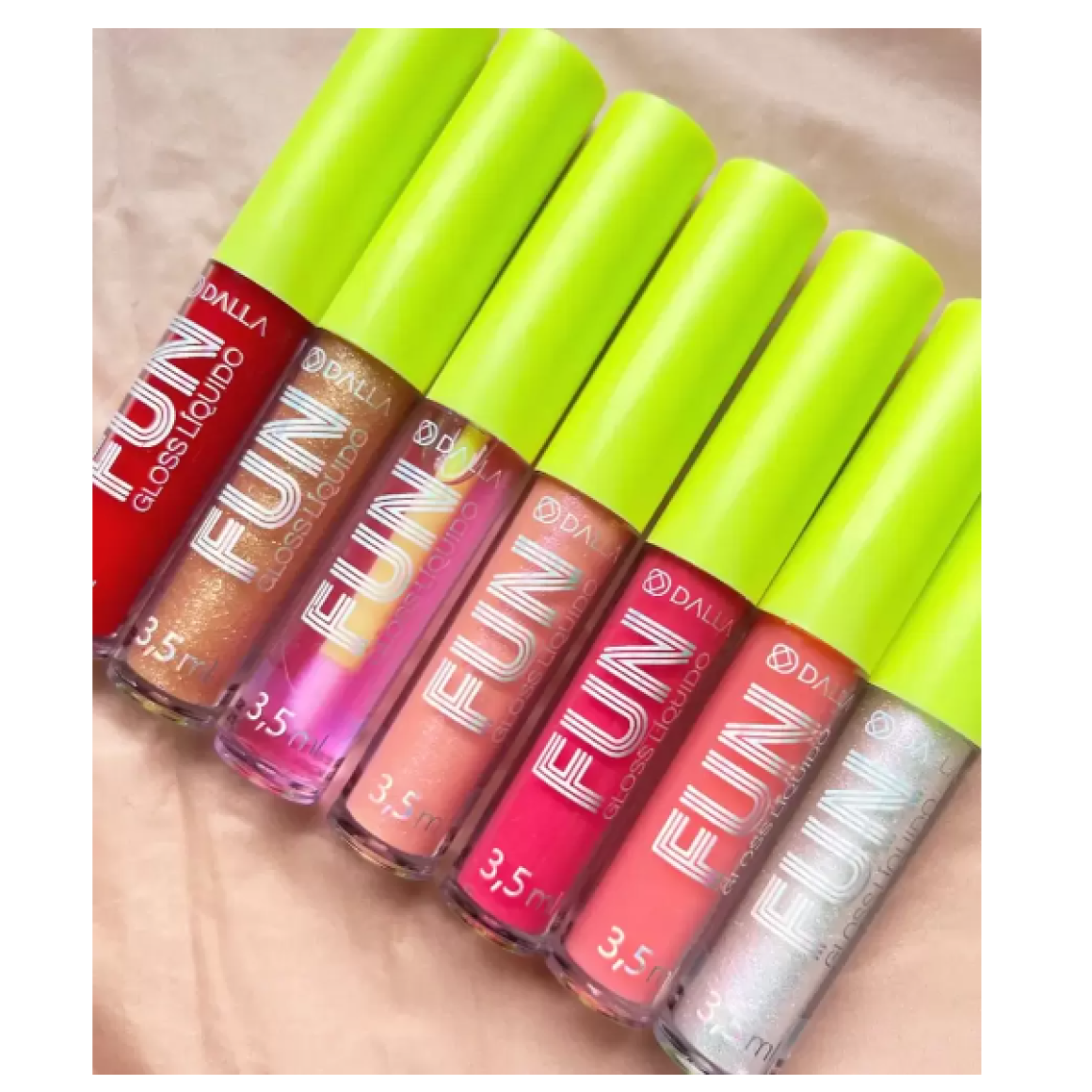 E a Linha Girls Just Wanna Have Fun da Dalla acabou de crescer e ficar ainda mais completa e divertida. A linha vem toda em cores neons, o que a faz inesquecível! O Gloss Fun da linha Girls Just Wanna Have Fun Dalla vem disponível em 7 cores lindíssimas, que vão trazer o brilho que faltava na sua make. A fórmula possui um brilho perfeito, textura em gel que não gruda e durabilidade é fantástica! E além de tudo isso, é cheia de ativos que mantém a hidratação para lábios em dia.