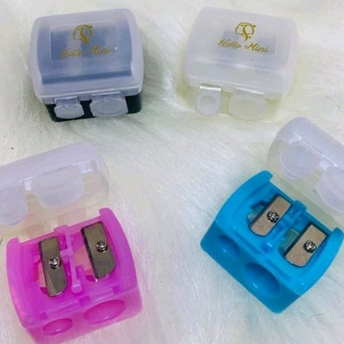 Apontador com duplo orifício para apontar todos os tamanhos de lápis para olhos, lápis sombra e lápis labial.