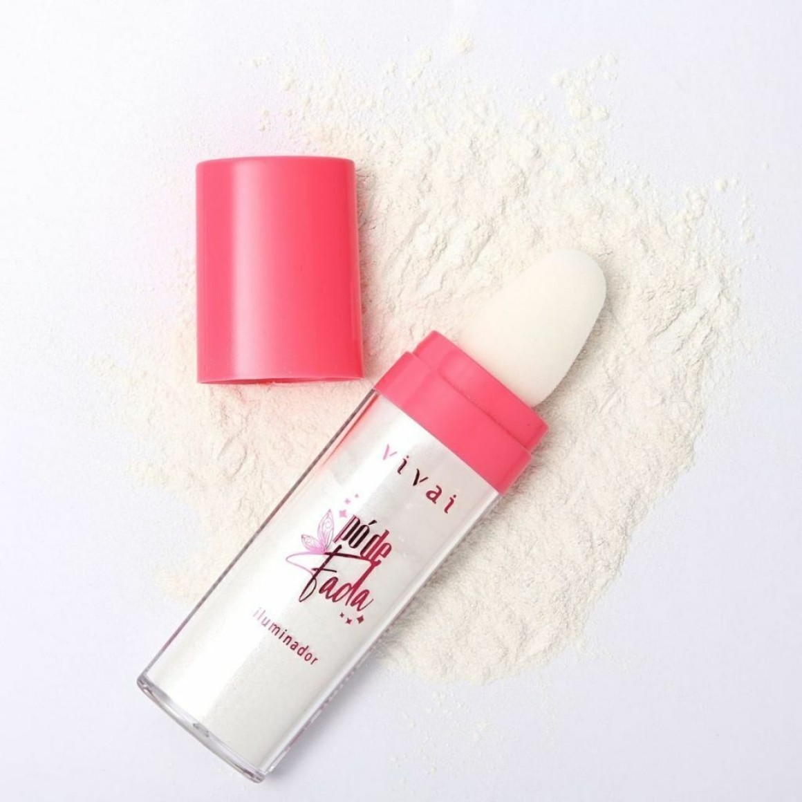 O Iluminador Pó de Fada vem com aplicador, ideal para realçar a maquiagem e destacar os pontos fortes do seu rosto ou corpo.