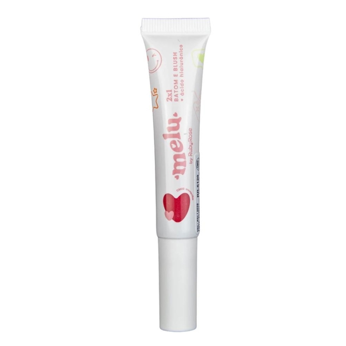 Chegou o melhor produto multifuncional que você vai se apaixonar! A bisnaga que te oferece pigmentação, hidratação, aplicação perfeita e com 12 cores modernas e divertidas! O 2x1 Batom e Blush da MELU! Contendo Ácido Hialurônico, que garante hidratação e suavidade aos seus lábios e rosto.