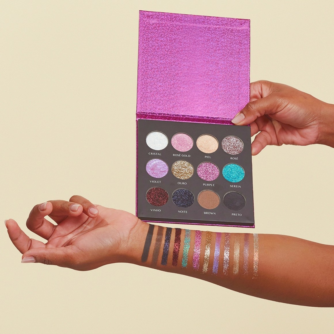 Contém: 12 Sombras de efeito com textura e acabamentos diferentes: glitter, mousse e cintilantes