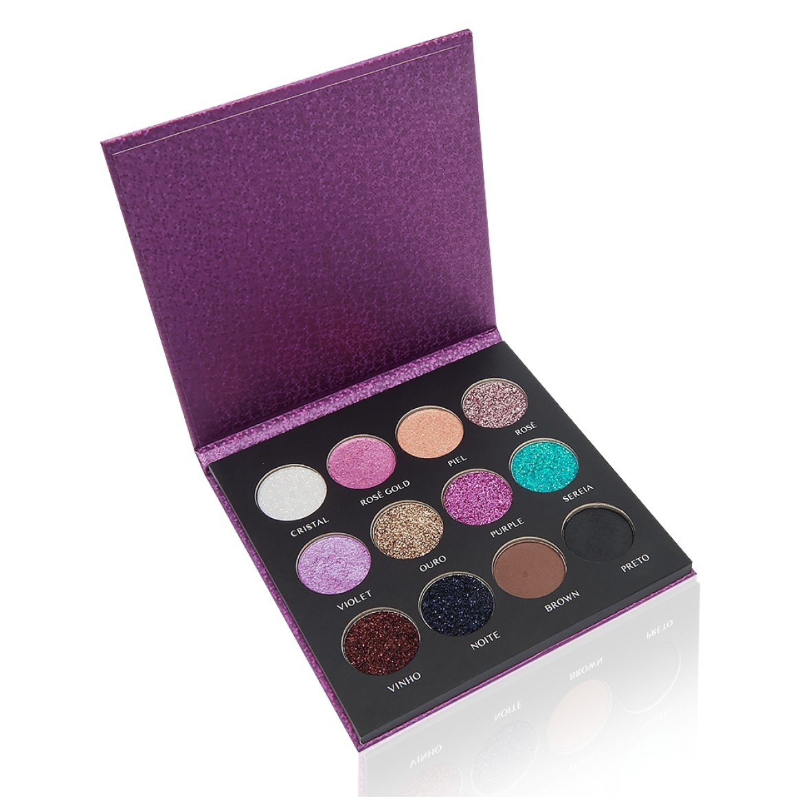 Contém: Box com 12 paletas sendo 12 Sombras de efeito com textura e acabamentos diferentes: glitter, mousse e cintilantes