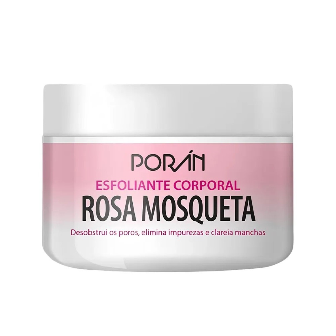 O Esfoliante Corporal Rosa Mosqueta Porán promove renovação celular, rico em ômega 6 e 9 estimula o colágeno, desobstrui poros, elimina as impurezas, clareia marcas e manchas indesejadas. Desenvolvido para ser utilizado no rosto e no corpo, os grânulos esfoliantes removem delicadamente as células mortas, enquanto a textura cremosa oferece uma aplicação confortável. Integre-o à sua rotina para conquistar uma pele suave, renovada e com um toque refrescante de tropicalidade.