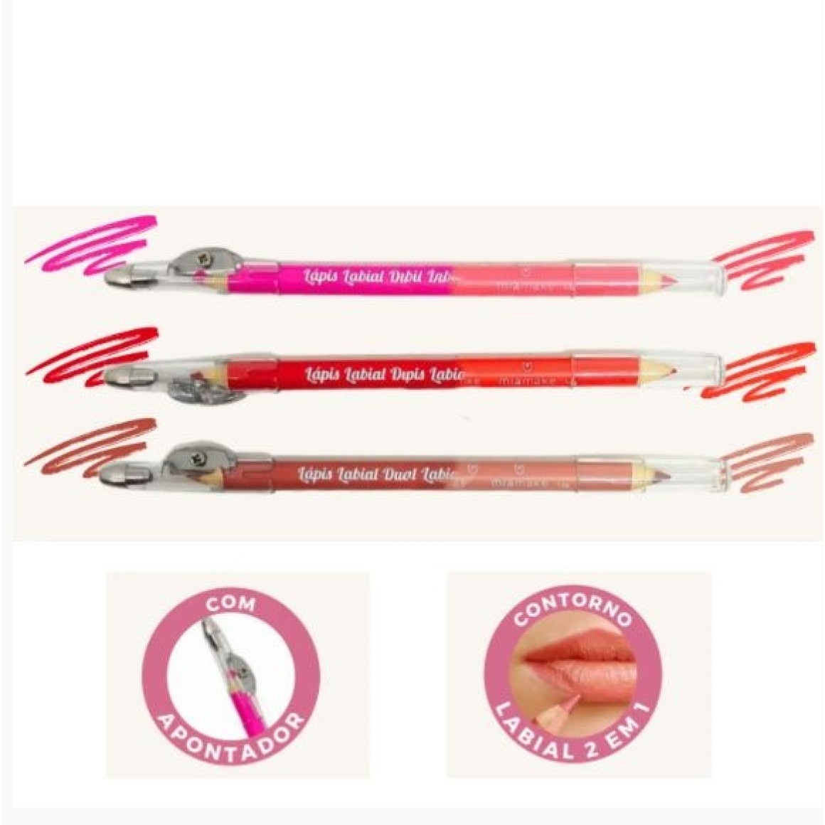 O Lápis Labial Duo Mia Make é ideal para destacar os lábios. Além de ser prático na hora da aplicação, contorna e preenche os lábios com uma fina camada.
