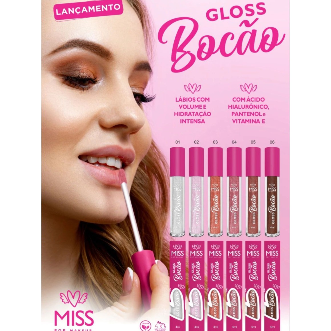 Kit 6 Gloss Labial Bocão Miss Pop