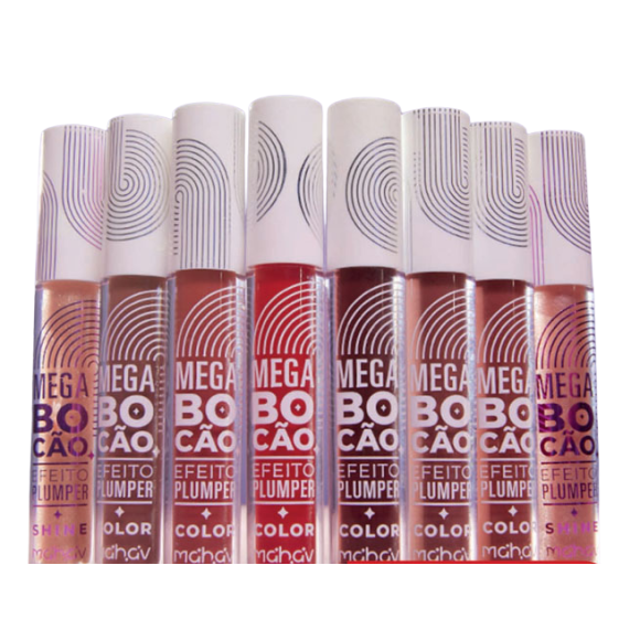 O Gloss Labial Mega Bocão, é um gloss que nutre, hidrata e intensifica o volume dos lábios. O efeito de volume pode ser observado após 5 minutos da aplicação pois contém ácido hialurônico que auxilia no aumento do volume dos lábios. Por ser translúcido, pode ser usado diretamente nos lábios ou sobre o batom e pode ser usado diariamente.