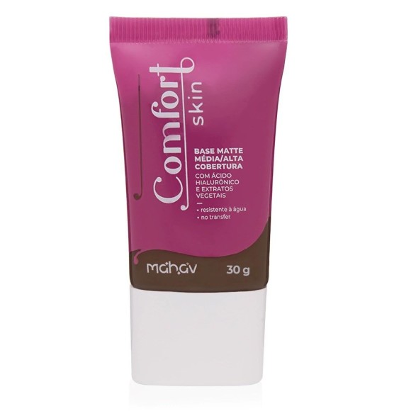 Com acabamento matte e cobertura média/alta, a BASE MATTE COMFORT SKIN MAHAV foi formulada com ácido hialurônico e extratos vegetais que mantêm o viço da pele, garantindo mais durabilidade à maquiagem, resultando em um acabamento de pele saudável e bem uniforme.
