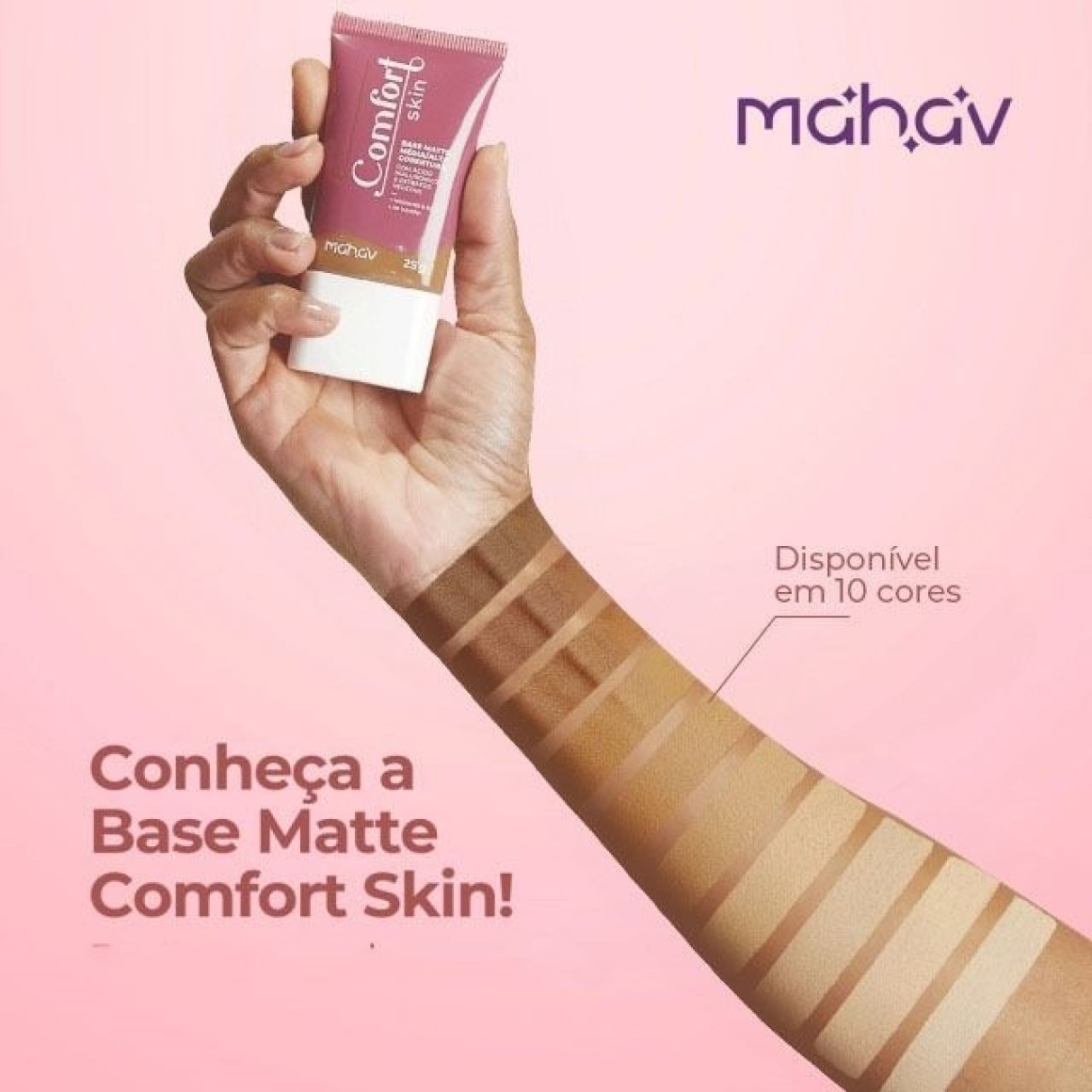 Esta base foi inspirada na fórmula do CORRETIVO e CONTORNO DIA A DIA, um produto muito amado e reconhecido por nossos consumidores. Através de acompanhamento do consumo observamos que, muitas pessoas o utilizam como base, fazendo a cobertura total da pele, foi aí que nos debruçamos sobre o desenvolvimento e evoluímos a formulação para a correta aplicabilidade do produto como base facial, assim chegamos à BASE MATTE COMFORT SKIN MAHAV