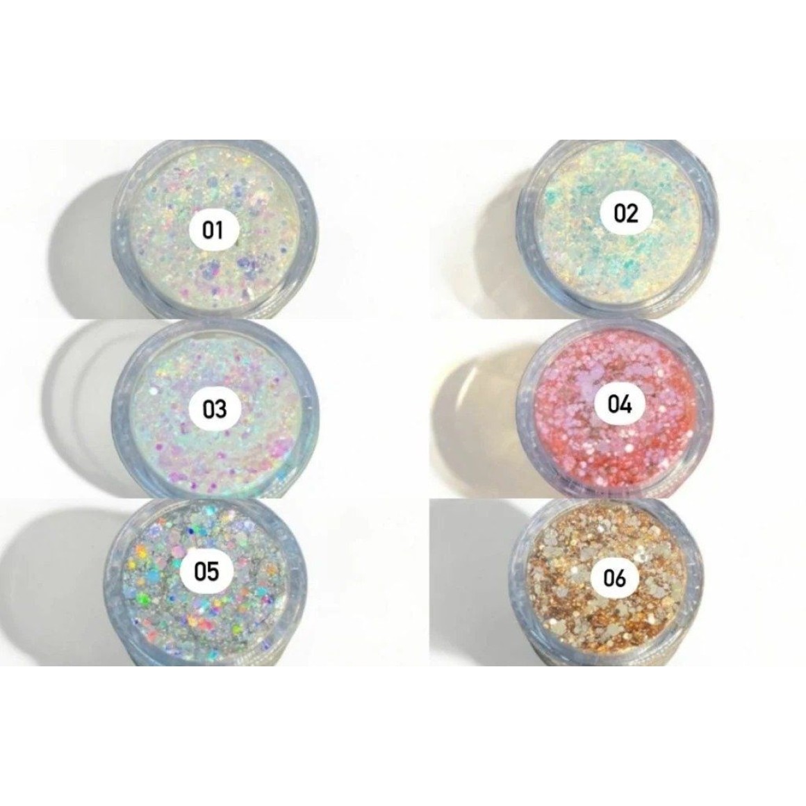 Mix de glitter flocado e partículas finas, para um brilho intenso.