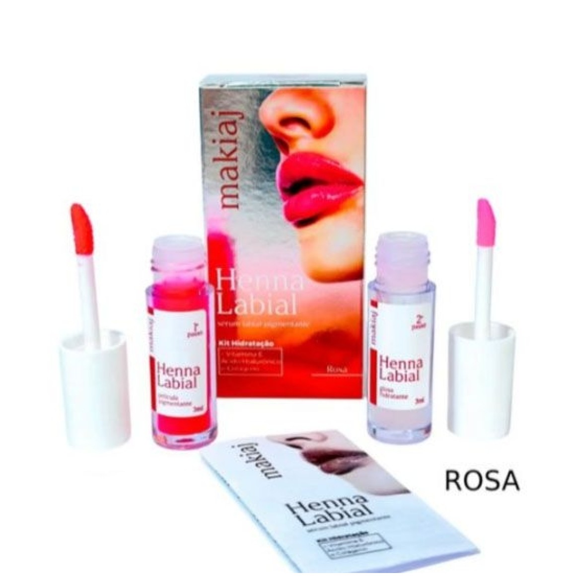 Henna Labial Makiaj traz duas cores exclusivas: Vermelho e Rosa. Com fórmula de longa duração e enriquecida com Vitamina E, Ácido Hialurônico e Colágeno, esta edição especial garante lábios coloridos, hidratados e rejuvenescidos. Um presente perfeito para realçar sua beleza todos os dias!