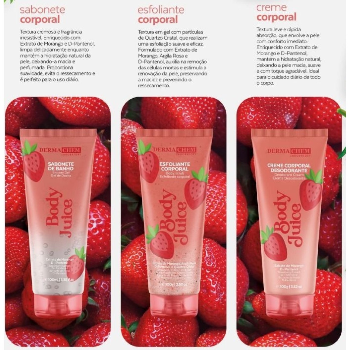 Textura leve e rápida absorção que envolve a pele com conforto imediato. Enriquecido com extrato de morango e D-pantenol, mantém a hidratação natural, deixando a pele macia, suave e com toque agradável. Ideal para o cuidado diário de todo o corpo.