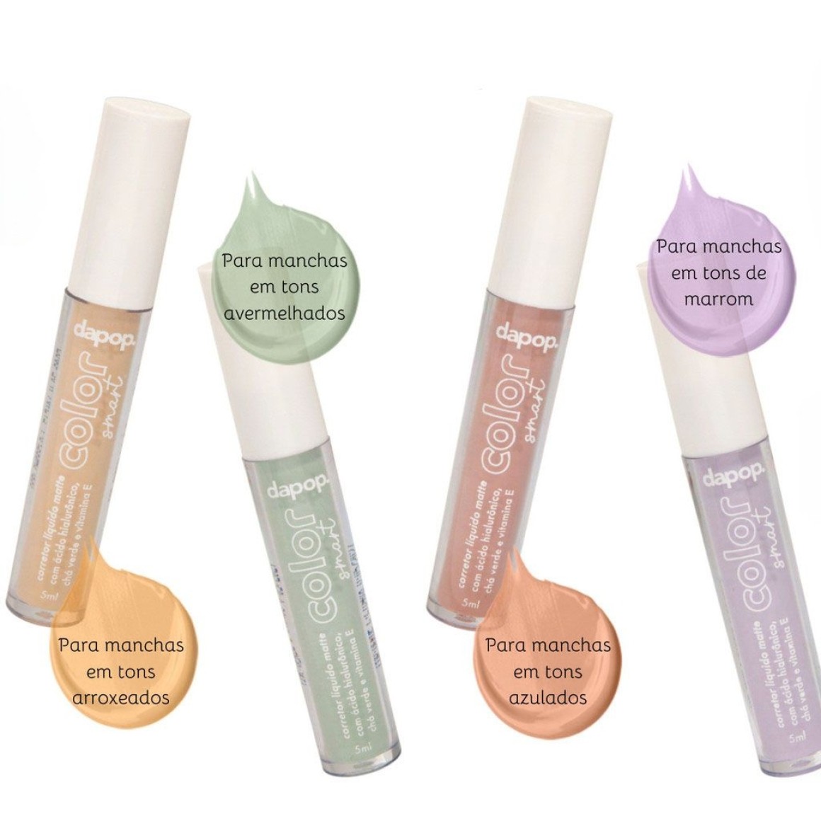 Corretivo Colorido Líquido Matte da linha Color Smart foi especialmente desenvolvido para oferecer uma cobertura profissional e precisa das imperfeições da pele. Disponível nas tonalidades roxo, verde, amarelo e salmão, este corretivo combina eficácia com um acabamento matte natural, ideal para camuflar manchas e tonalidades indesejadas no rosto.