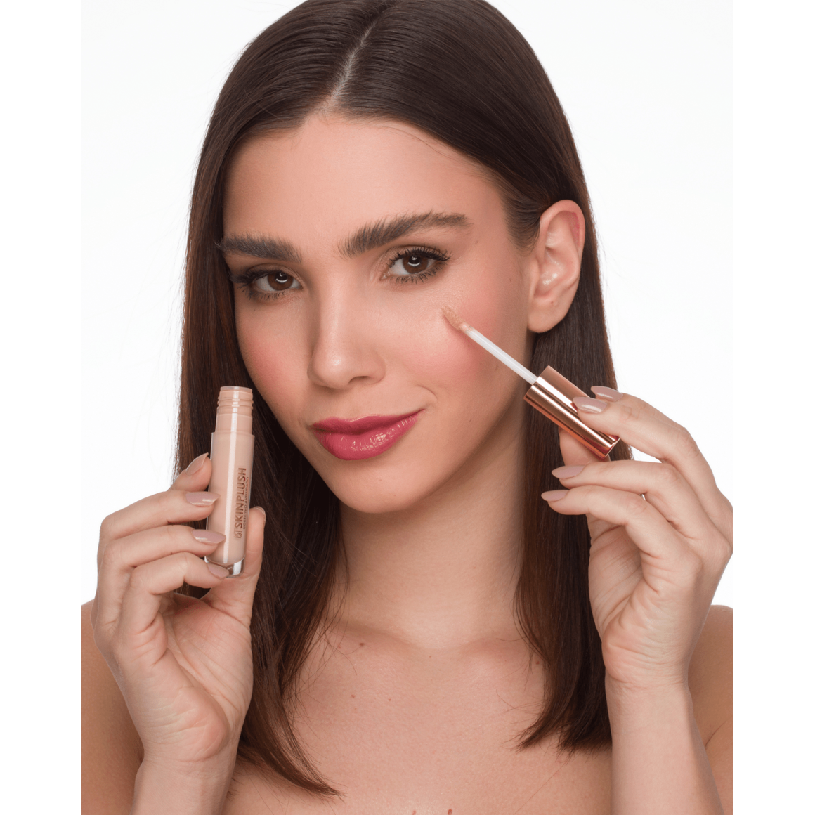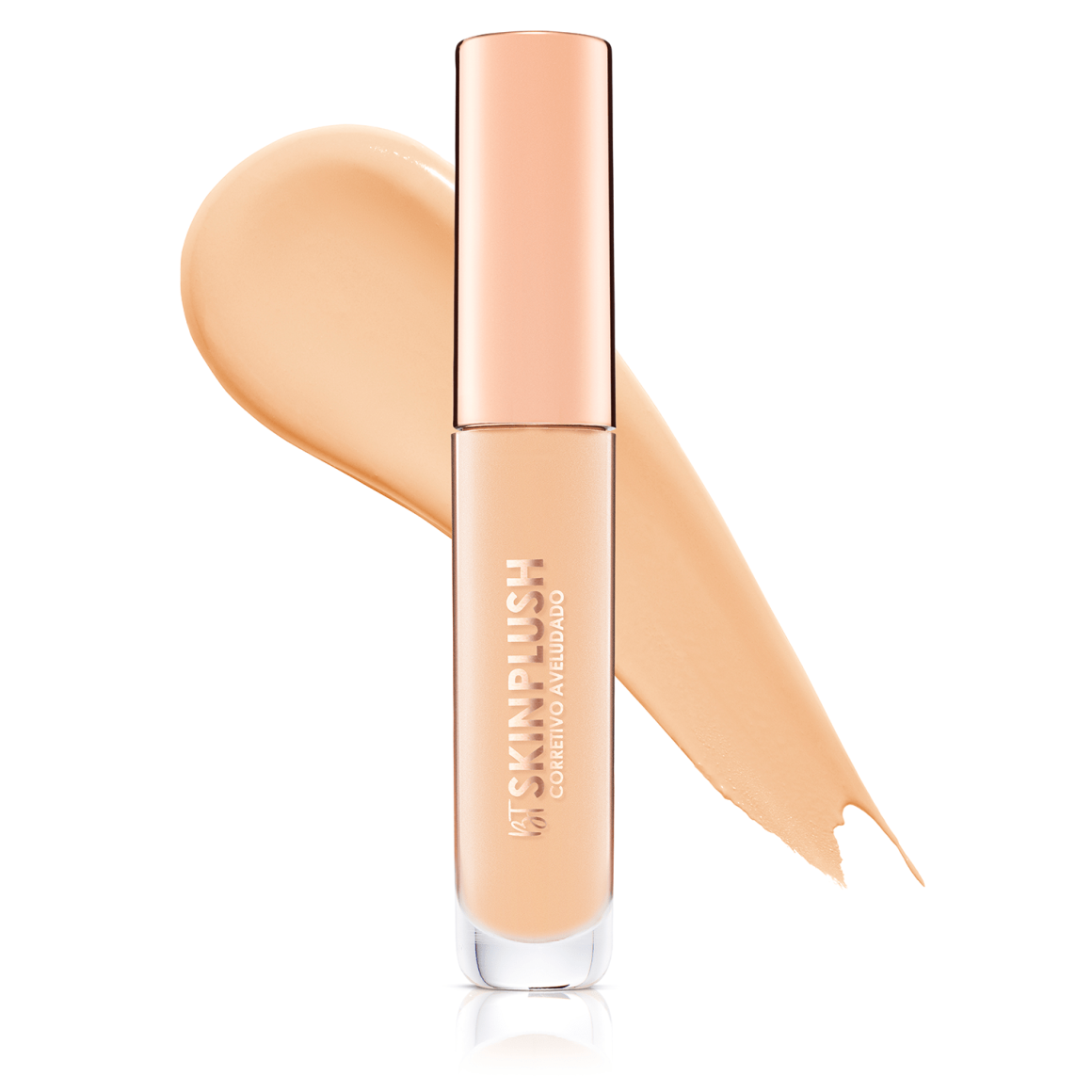 Um corretivo de textura soft mousse que oferece uma cobertura de leve a média e acabamento aveludado. Além de corrigir, iluminar e camuflar, o BT Skinplush conta com diversos ativos que ajudam a atenuar a aparência das olheiras e bolsas ao redor dos olhos. Ele também auxilia na hidratação e melhora da elasticidade da pele. Possui uma textura mousse, versátil e aveludada que garante maior conforto ao longo do uso. Ele conta com partículas modificadoras de sensorial para potencializar o efeito soft focus. Essas partículas se desmancham em contato com a pele garantindo uma finalização super aveludada e macia.
