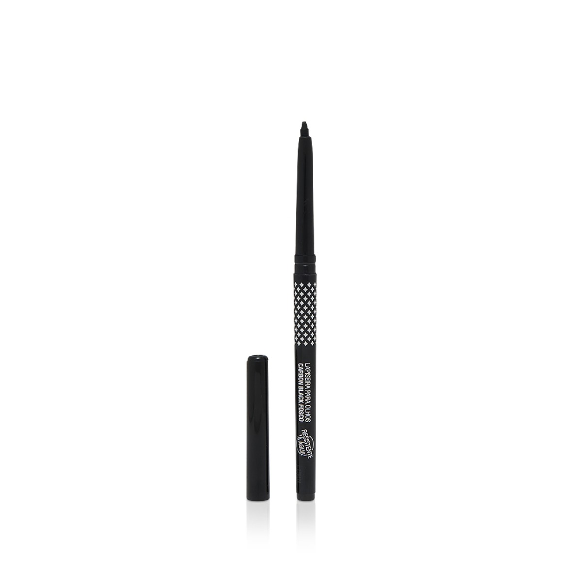 O LÁPIS DELINEADOR RETRÁTIL PARA OLHOS – CARBON BLACK FOSCO é retrátil e dispensa o uso do apontador.