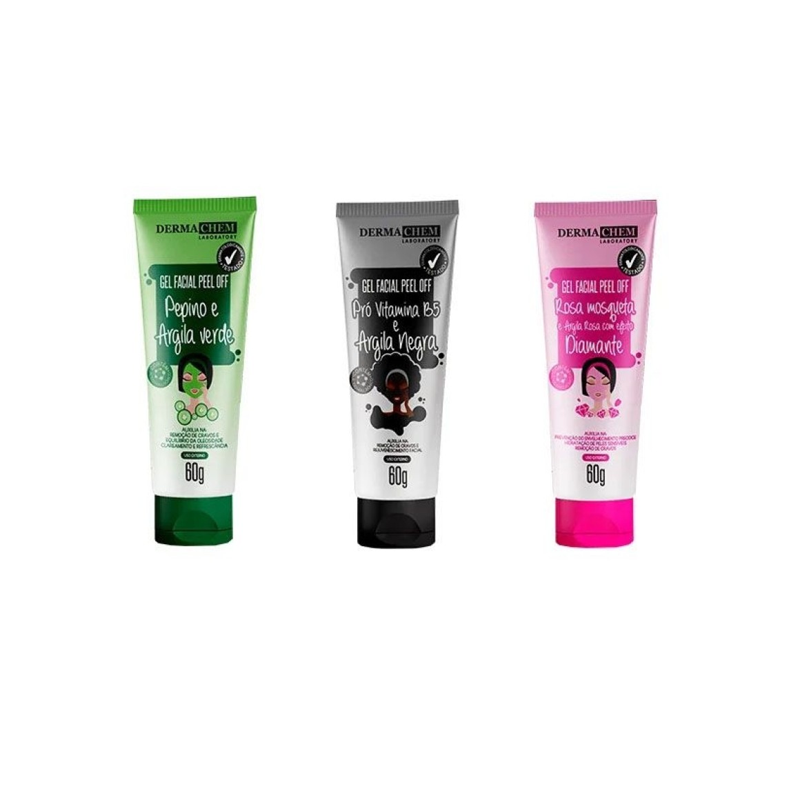 Kit 4 Gel Facial Peel Off Argila Dermachem 60g cada